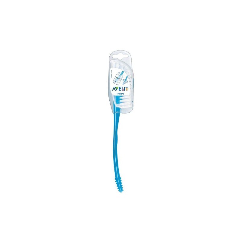 COMPOSITION : brosse recourbée, extrémité de manche moulée, brins serrés, tête à bout recourbé, manche moulé, poils doux, certifié sans BPA (bisphénol-A), nettoie-tétine intégré au manche, embout spécial tétine