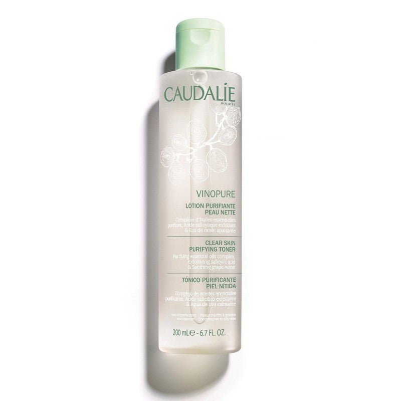 La Lotion Purifiante Vinopure de Caudalie réduit l'excès de brillance et purifie la peau, offrant un teint net et un grain de peau affiné dès l'application, pour un usage quotidien.