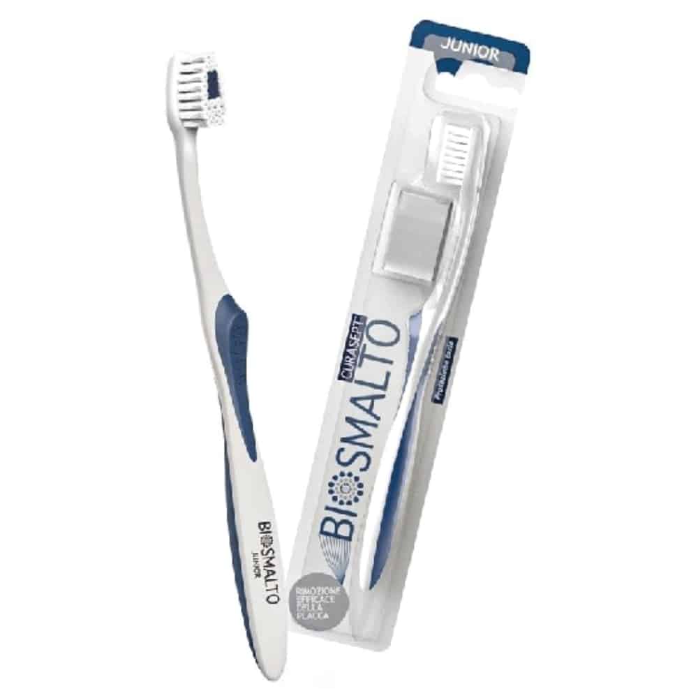 Un bon brossage dès l’enfance limite le risque de caries à long terme. La brosse Curasept Biosmalto Junior est pensée pour les dents fragiles des enfants de 7 à 12 ans, qu’il s’agisse de dents de lait ou définitives.