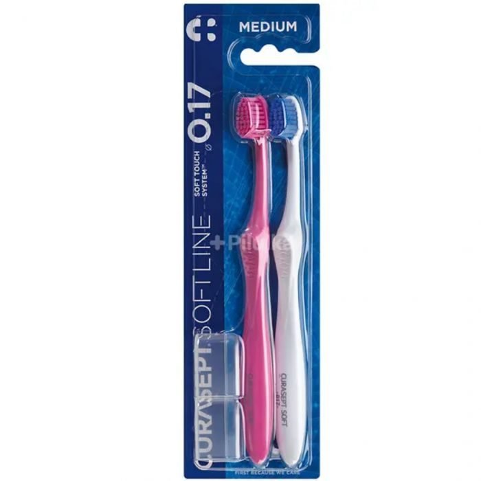 Le modèle Medium 017 de Curasept retire la plaque dentaire sans irriter les gencives, grâce à ses brins souples et denses, adaptés aux gestes minutieux du brossage quotidien.