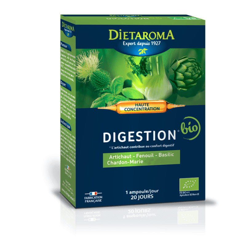 Dietaroma combine artichaut, fenouil, basilic et chardon-marie pour apaiser la digestion. Ces ingrédients naturels aident à soulager les ballonnements et à retrouver une sensation de légèreté.