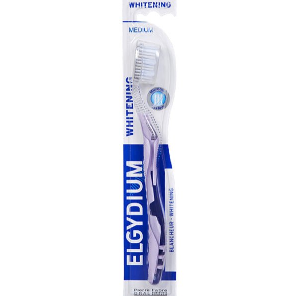 La brosse à dents Elgydium Blancheur Medium élimine efficacement la plaque dentaire tout en respectant l’émail, pour des dents éclatantes de propreté et un sourire lumineux au quotidien.