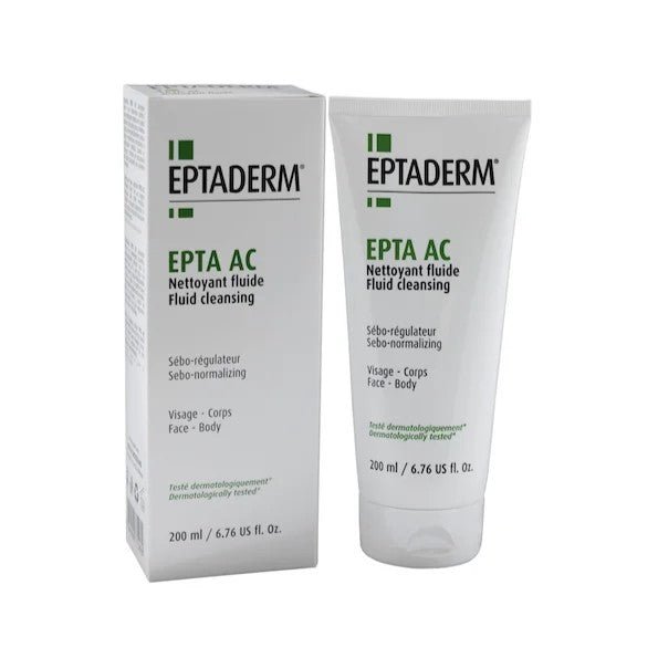 Epta AC Nettoyant Fluide a été formulé pour les peaux sujettes aux brillances et aux boutons. Il aide à purifier la surface cutanée, apaise les zones irritées et limite la formation de nouvelles imperfections. Sa texture fluide se rince facilement, laissant la peau propre sans sensation de sécheresse.