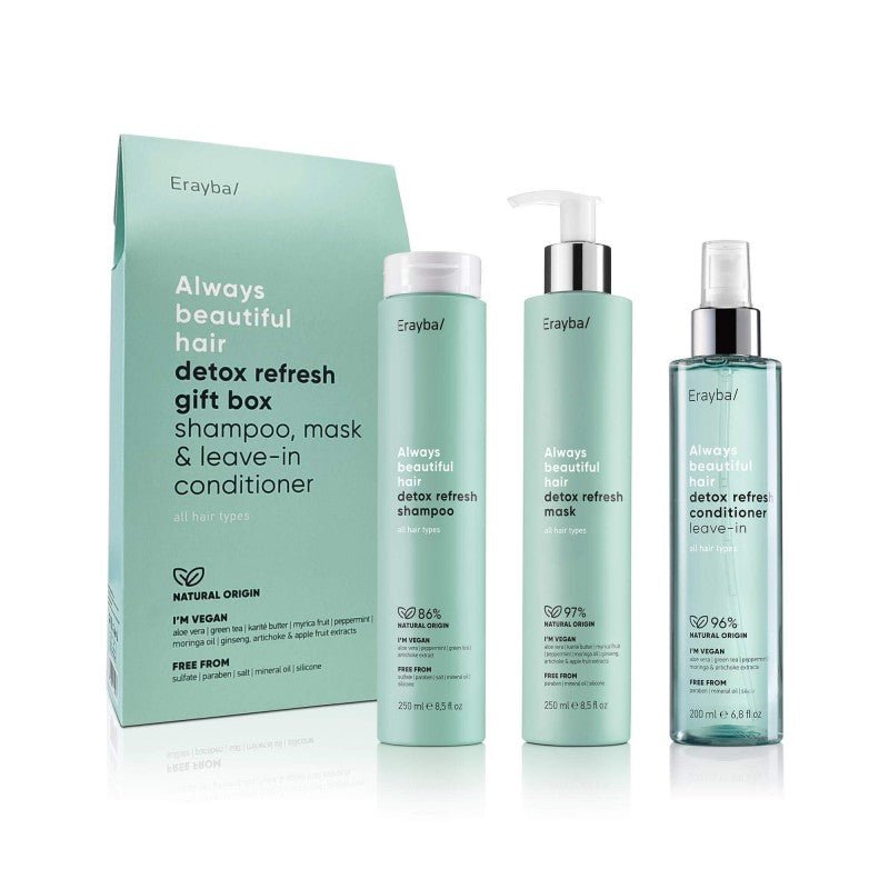 Un cheveu équilibré et en bonne santé nécessite un soin qui purifie sans dessécher. Le Coffret ERAYBA Abh Detox Refresh combine deux produits formulés pour éliminer les impuretés et maintenir l’hydratation essentielle du cuir chevelu et de la fibre capillaire. Sa composition naturelle soutient la vitalité des cheveux, de la racine aux pointes, tout en respectant leur structure.