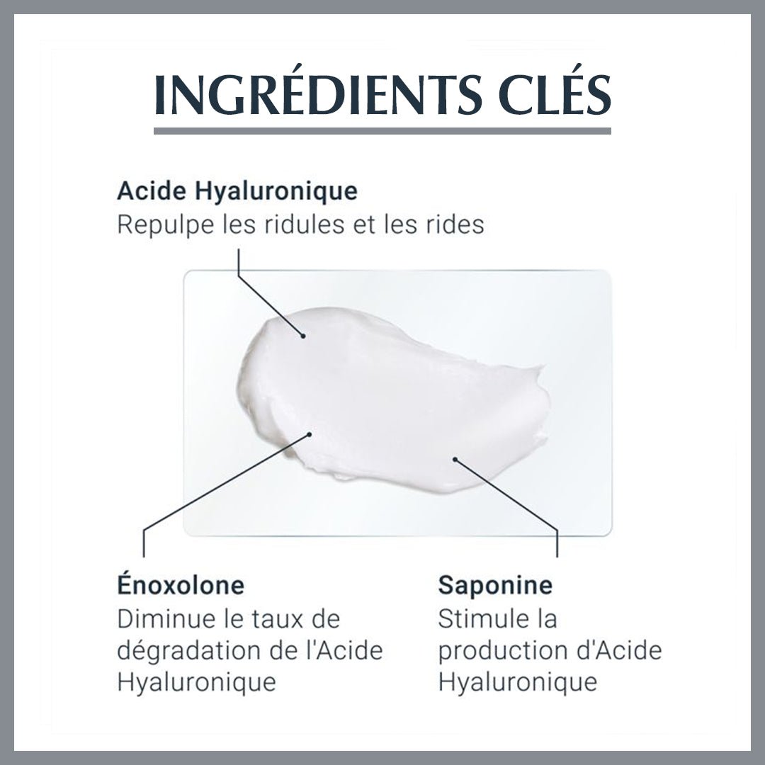 Dès que la peau devient plus sèche, elle perd en souplesse et laisse parfois apparaître des ridules plus marquées. Ce soin de jour a été formulé pour répondre à ces signes de déshydratation cutanée, en s’appuyant sur les propriétés reconnues de l’acide hyaluronique.