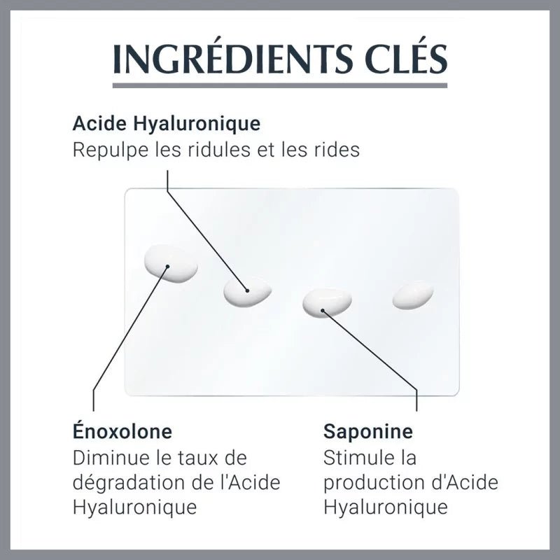 Hydratation ciblée : L'acide hyaluronique de bas poids moléculaire agit en surface pour lisser les ridules, tandis que la forme de haut poids moléculaire hydrate en profondeur.