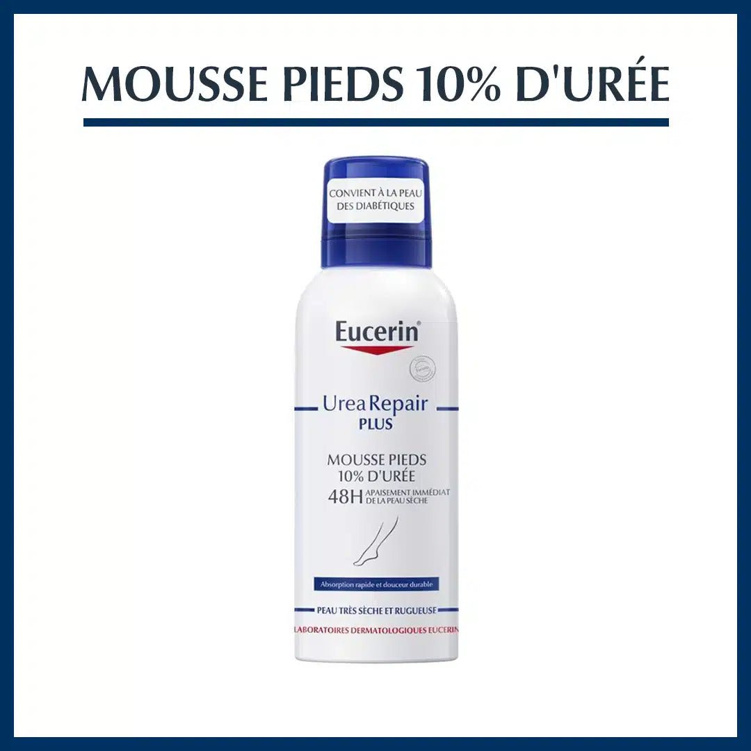 Peaux épaisses, zones rugueuses, fissures au talon : ces signes traduisent souvent une barrière cutanée altérée et un besoin accru en agents hydratants adaptés. La mousse Eucerin UreaRepair PLUS a été développée spécifiquement pour répondre à ce type de sécheresse sévère.