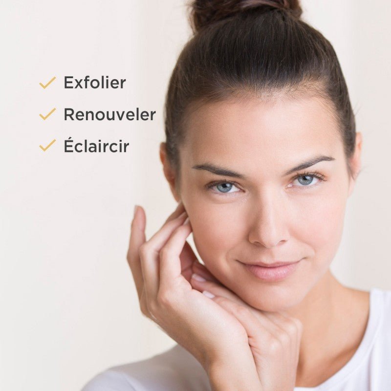 Le soir, sur peau propre et sèche, appliquez une fine couche en évitant le contour des yeux. Commencez par une application un soir sur deux, puis ajustez selon la tolérance de votre peau. Ce type de soin augmente la sensibilité au soleil : une protection solaire quotidienne est indispensable pendant toute la durée d’utilisation.