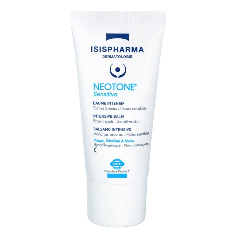 Neotone Sensitive Baume Intensif agit comme un soin nocturne ciblé pour les peaux sujettes aux taches pigmentaires. Son complexe DEPI-ACT® aide à limiter l’hyperpigmentation, hydrate durablement et apaise les zones sensibles fragilisées. Utilisé régulièrement, il contribue à ralentir l’apparition de nouvelles taches, y compris celles liées au masque de grossesse, tout en améliorant le confort cutané.