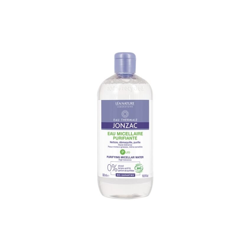 L’eau micellaire purifiante Jonzac élimine les impuretés et l’excès de sébum sans agresser la peau, laissant une sensation de fraîcheur et un teint visiblement plus net après le nettoyage.