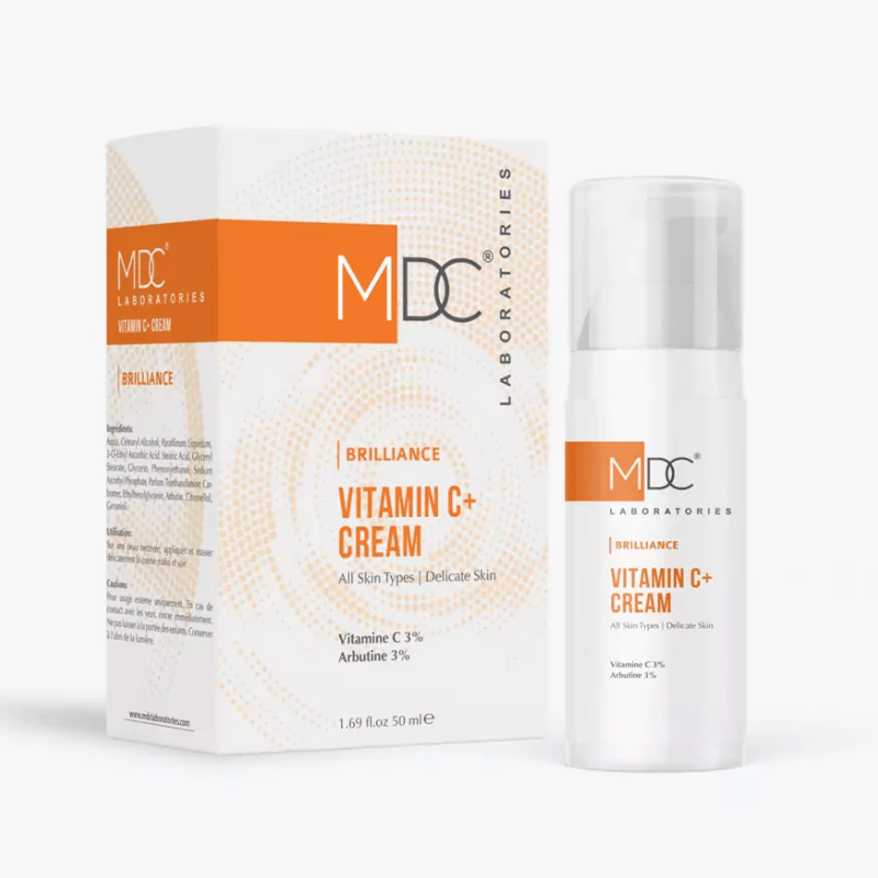 La Crème Vitamine C+ MDC Brilliance associe une concentration efficace de vitamine C pure pour aider à corriger les irrégularités pigmentaires. Elle contribue à homogénéiser le teint et à atténuer visiblement les taches, sans effet gras.
