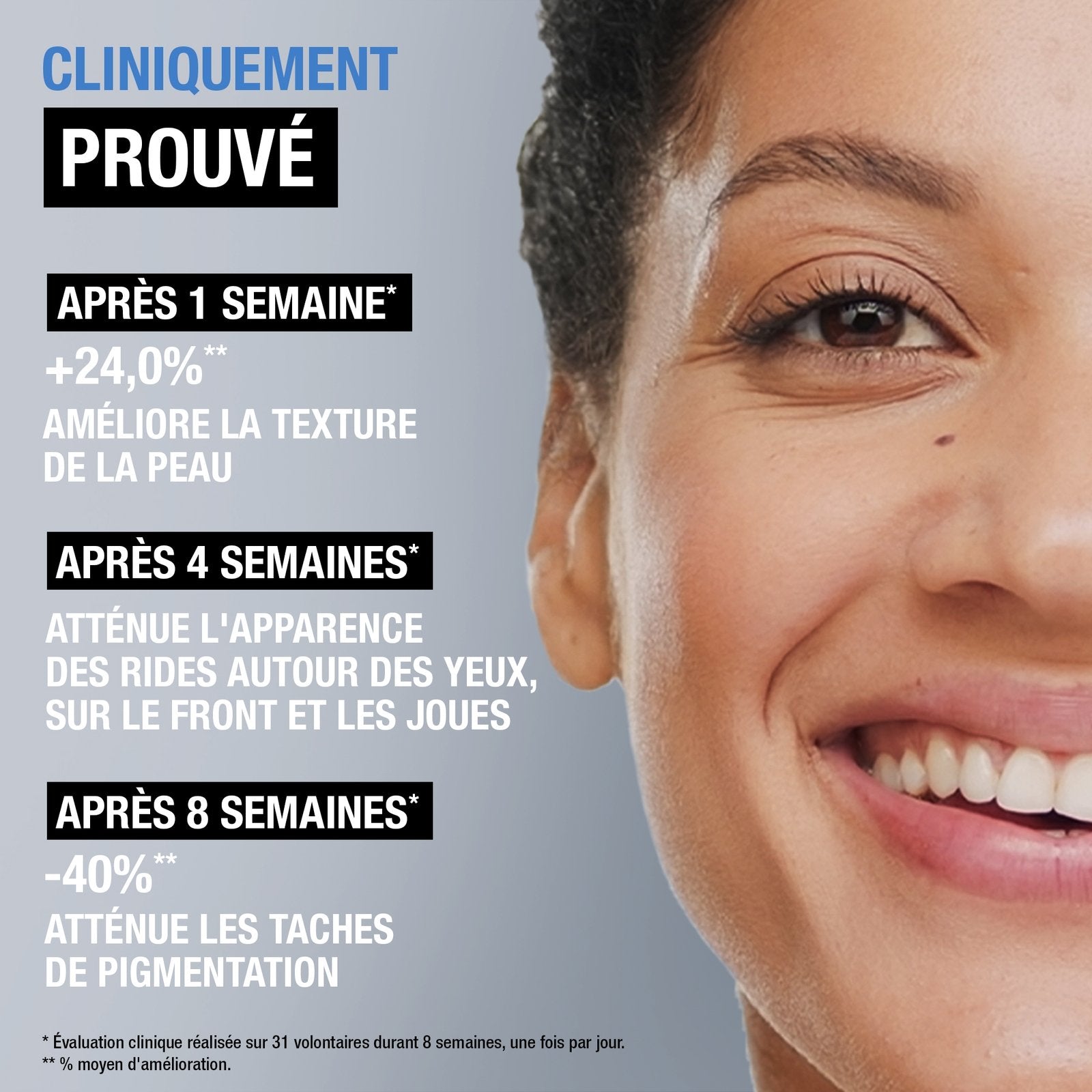 Aide à diminuer les taches pigmentaires : L’action combinée du rétinol et des antioxydants contribue à estomper progressivement les irrégularités de pigmentation.