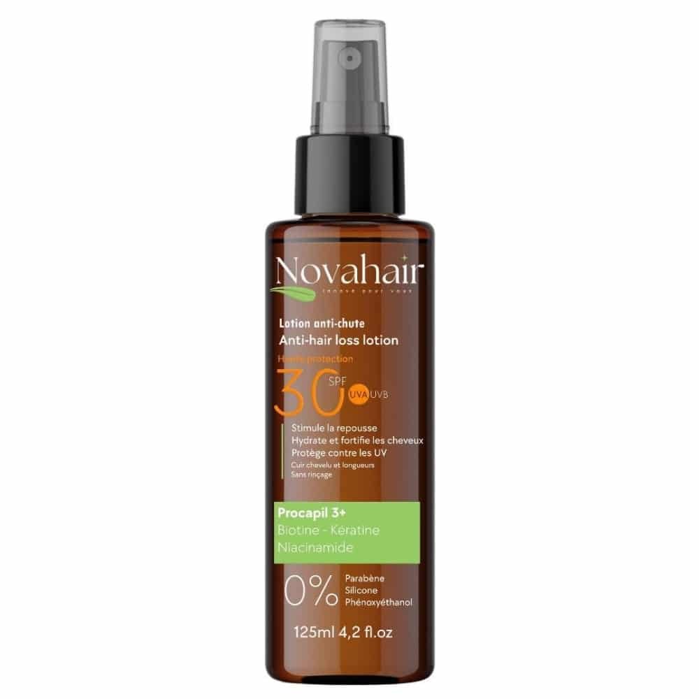 La lotion capillaire anti-chute SPF 30 de NOVAHAIR combine protection solaire et soin des cheveux fragiles. En protégeant le cuir chevelu et la fibre capillaire des rayons UV, elle participe à limiter le stress environnemental et à soutenir la santé globale des cheveux.