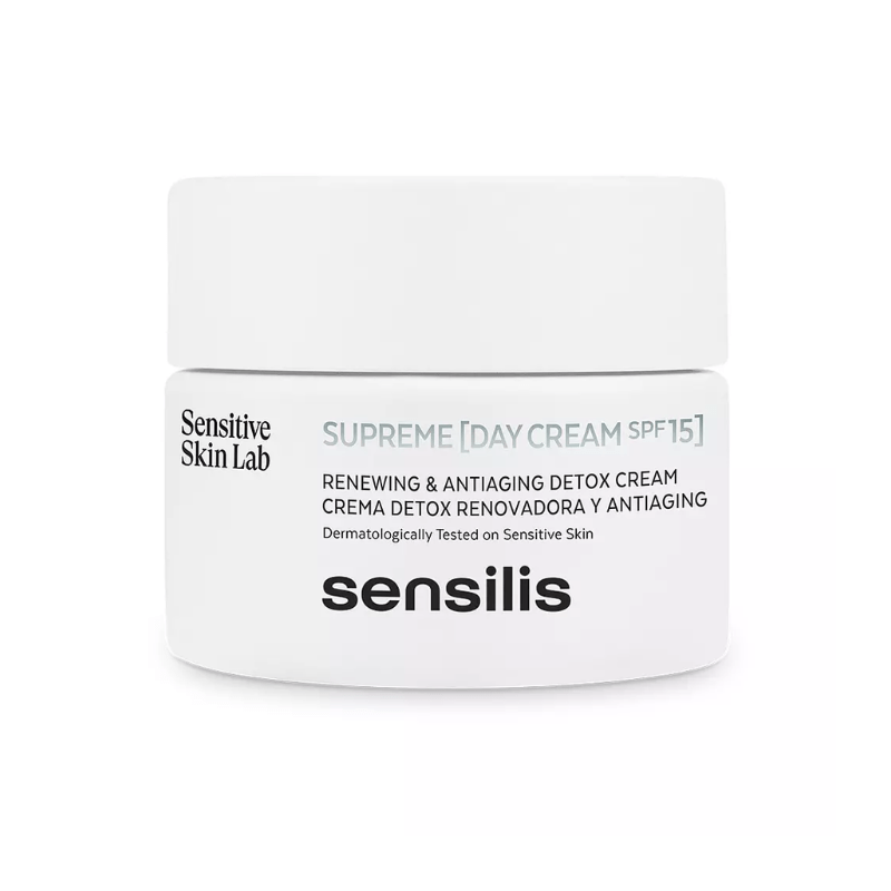 La crème de jour Sensilis Supreme Renewal Detox s’appuie sur l’extrait de caviar, un actif reconnu pour soutenir la régénération cellulaire, et le combine à des antioxydants naturels pour limiter l’impact du stress oxydatif. Sa formule inclut un filtre solaire SPF15 afin d’apporter une protection quotidienne contre les effets du soleil.
