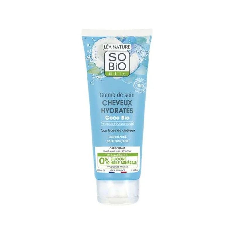 Crème nourrissante sans rinçage formulée à base d’huile de coco bio et d’aloe vera, destinée à hydrater, lisser et protéger les cheveux secs ou ternes. Elle facilite le coiffage et redonne douceur sans effet gras.