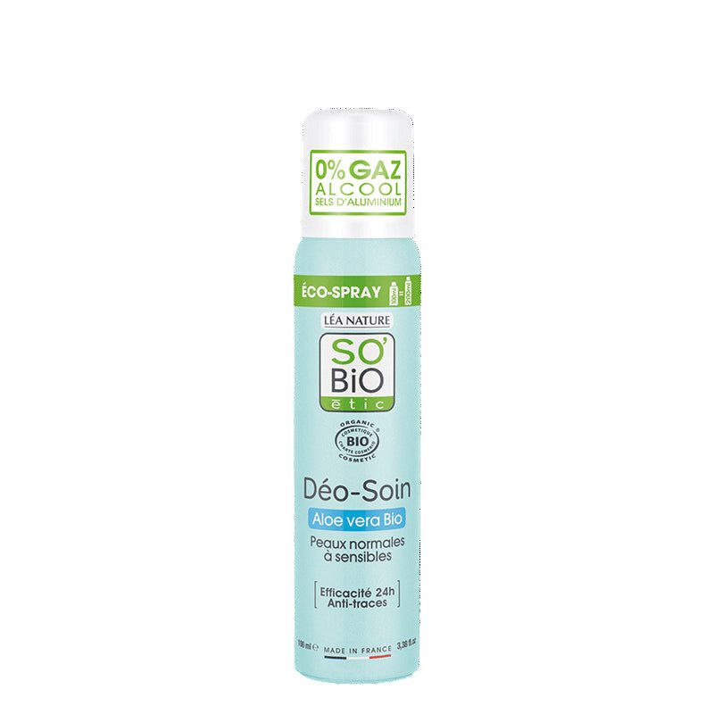 L’éco-spray déodorant à l’Aloe Vera laisse la peau respirer tout en assurant une protection fraîcheur pendant 24 heures. Sa formule sans gaz ni alcool préserve le confort des épidermes sensibles.