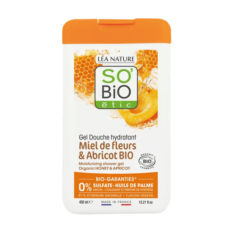 Sa texture douce nettoie la peau sans la dessécher, tandis que le miel et l’abricot bio apportent une hydratation apaisante et un parfum réconfortant, laissant la peau souple après la douche.