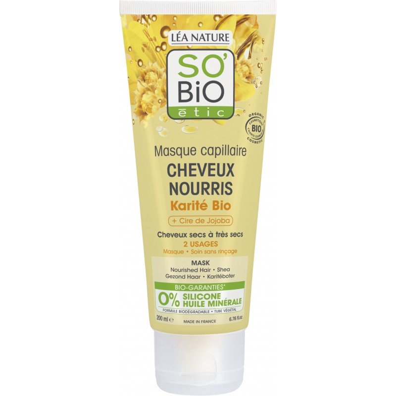 Formule riche en karité bio et cire de jojoba, ce masque nourrit intensément les cheveux secs. Il les assouplit, facilite le coiffage et redonne une brillance naturelle, sans rinçage.