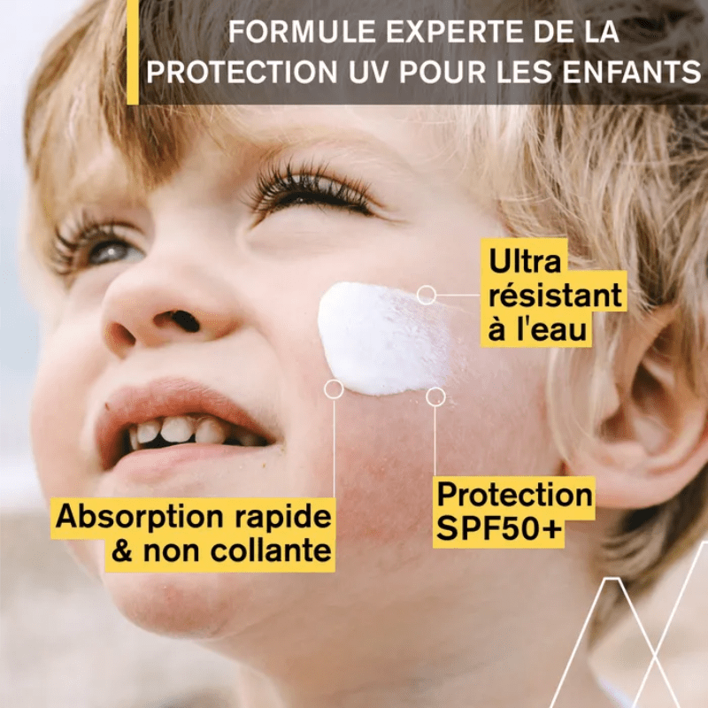 Le lait solaire SPF50+ Bariésun protège efficacement votre enfant des UV tout en garantissant une application confortable, prévenant ainsi les rougeurs et la déshydratation pendant les expositions solaires.