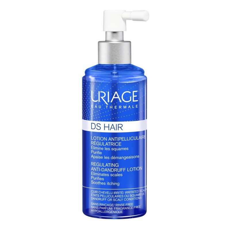 Action assainissante : L’Eau Thermale d’Uriage, riche en sels minéraux, contribue à apaiser la peau et à limiter les déséquilibres du microbiome capillaire.